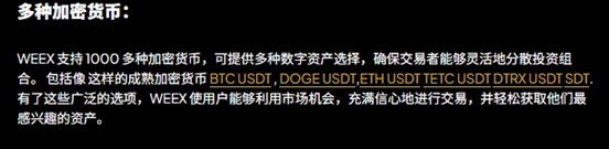 WEEX唯客提供包括合约交易、现货交易等多种产品类型,满足用户不同的资产配置需求。