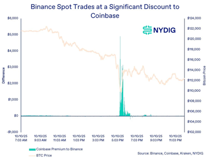 随着加密市场压力加剧,交易对手方风险浮现。在 Coinbase 上交易的比特币,相较全球最大离岸交易所 Binance 出现显著溢价。